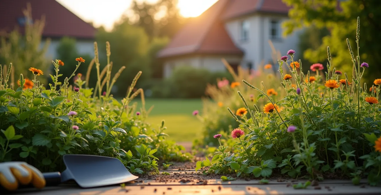 Der beste Schutz vor invasiven Pflanzen ist ein Garten, der ihnen von Natur aus keine Chance lässt. Anstatt ständig gegen unerwünschte Eindringlinge zu kämpfen, ist es weitaus effektiver, ein stabiles und widerstandsfähiges Ökosystem zu schaffen. Dieses Konzept nennt sich biozönotische Resilienz: Ein gesunder, dicht bewachsener Garten mit einer Vielfalt an standortgerechten, heimischen Pflanzen bildet eine geschlossene Gemeinschaft, in der invasive Arten kaum Platz und Licht zum Keimen finden. Offene, nackte Bodenstellen sind wie eine Einladung für Pionierpflanzen, zu denen viele aggressive Neophyten gehören.